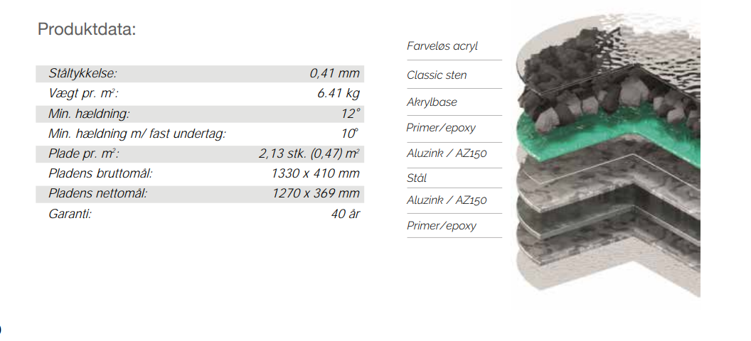 Med Metrotile® Bond QUARTZ er du helt enkelt sikret et produkt der opfylder alle de krav man kan stille til et moderne tag. Du er sikret et smukt tag med 40 års garanti.